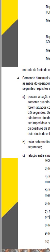 12.5 Na aplicação desta Norma e de seus anexos, devem-se considerar as características das máquinas e equipamentos, do processo, a apreciação de riscos e o estado da técnica. (Alterado pela Portaria MTPS n.º 509, de 29 de abril de 2016 - Vide Nota Técnica DSST/SIT n.º 48/20016)