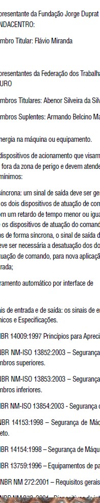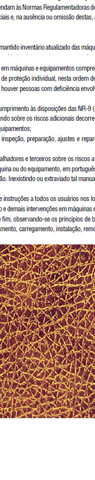 12.1 Esta Norma Regulamentadora e seus anexos definem referências técnicas, princípios fundamentais e medidas de proteção para garantir a saúde e a integridade física dos trabalhadores e estabelece requisitos mínimos para a prevenção de acidentes e doenças do trabalho nas fases de projeto e de utilização de máquinas e equipamentos de todos os tipos, e ainda à sua fabricação, importação, comercialização, exposição e cessão a qualquer título, em todas as atividades econômicas, sem prejuízo da observância do disposto nas demais Normas Regulamentadoras - NR aprovadas pela Portaria n.º 3.214, de 8 de junho de 1978, nas normas técnicas oficiais e, na ausência ou omissão destas, nas normas internacionais aplicáveis.