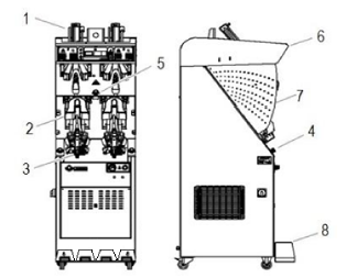 d) descrição detalhada da máquina ou equipamento e seus acessórios;