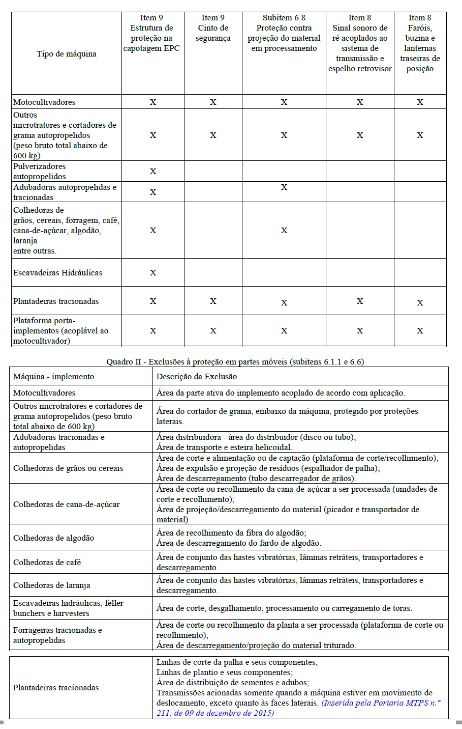 15.12.1 A largura útil de plataformas de inspeção e manutenção de plantadeiras deve ser de, no mínimo, 0,3m (trinta centímetros), conforme norma ISO 4254-9 ou alteração posterior. (Inserido pela Portaria