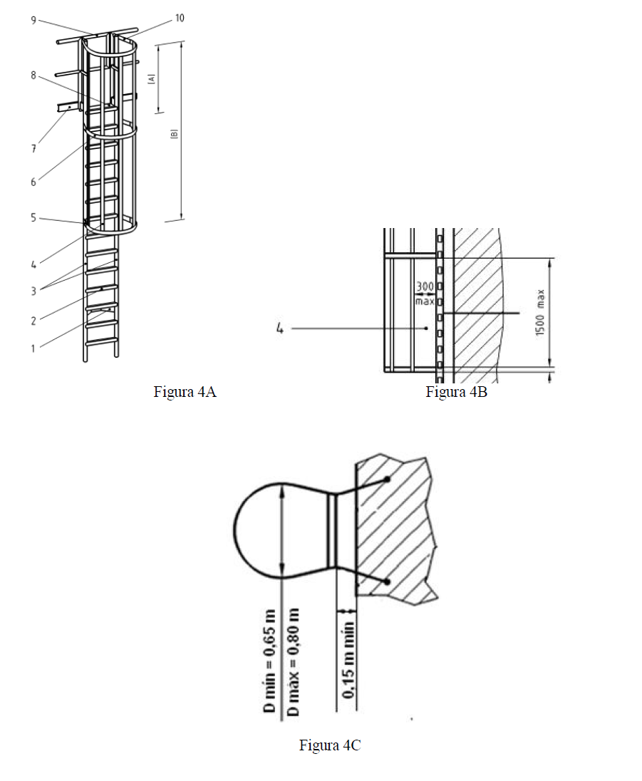 j) distância em relação à estrutura em que é fixada de, no mínimo, 0,15 m (quinze centímetros), conforme Figura 4C do Anexo III desta Norma; (Alterada pela Portaria MTE n.º 1.893, de 09 de dezembro de 2013)