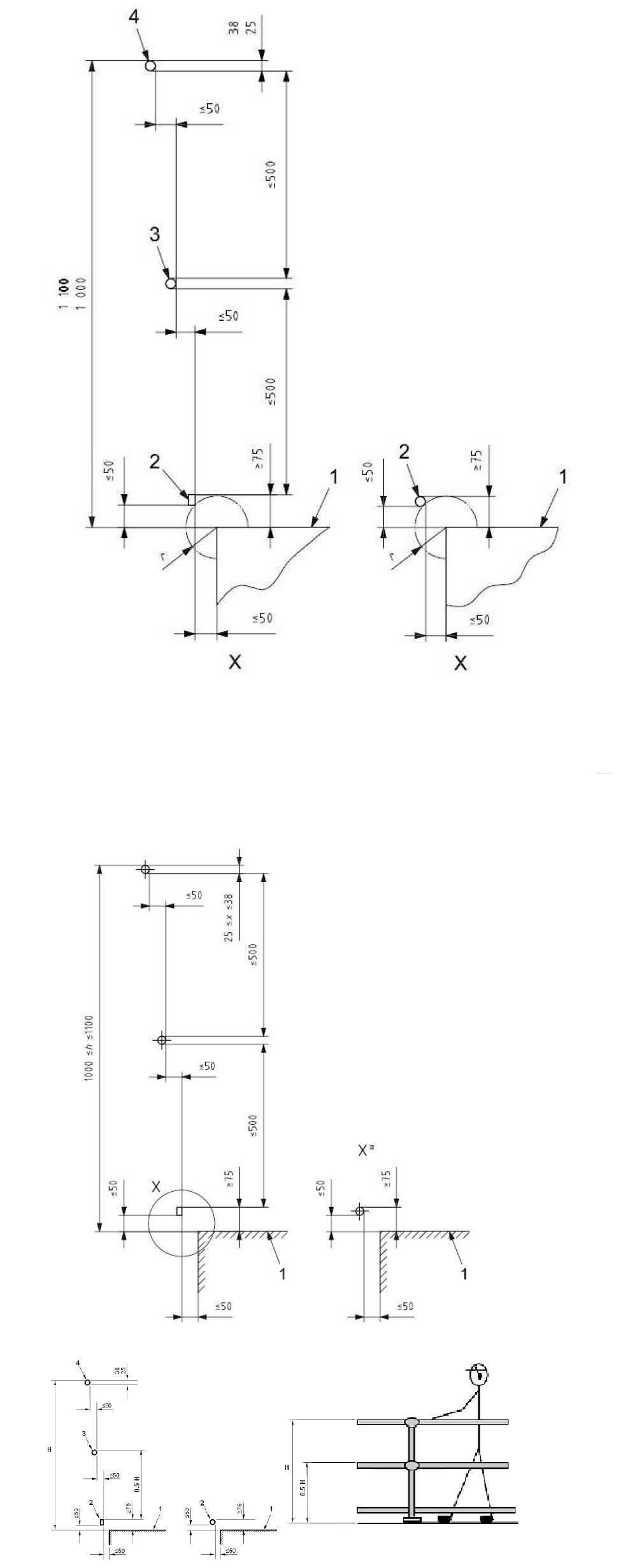 15.7.2 Para o sistema de proteção contra quedas em plataformas utilizadas em operações de abastecimento ou que acumulam sujidades, é permitida a adoção das dimensões da Figura 5 do Anexo III desta Norma.